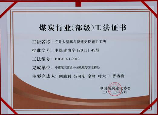 在井筒装备安装工程尤其是超深井筒装备安装上拥有行业最先进技术,其中一次成井安装工艺技术被评为中国施工企业科技成果一等奖。先后制作安装井筒深度600米以上的提升系...